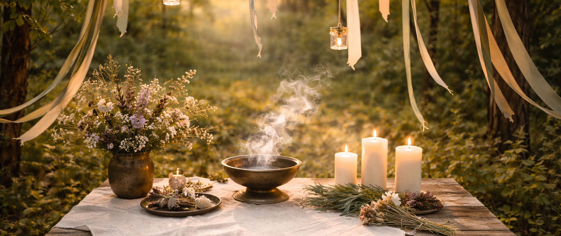 Jede Zeremonie wird gemeinsam entwickelt. Es gibt keine vorgefertigten Abläufe, sondern einen Rahmen, der eure Geschichte trägt und die Natur bewusst einbindet.